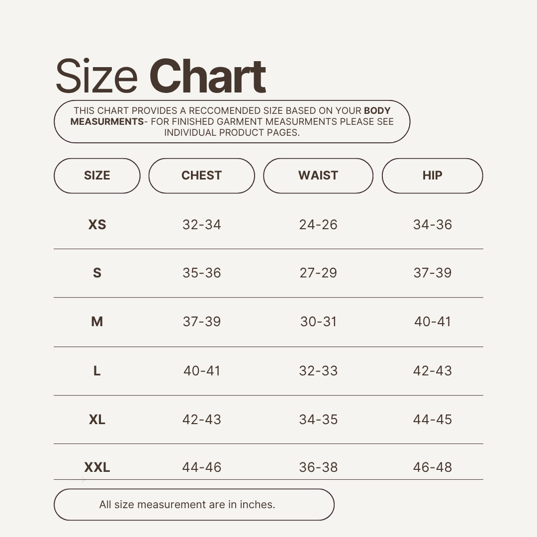 Take your chest, waist and hip measurements and compare them to the chart to find the size that is most similar.